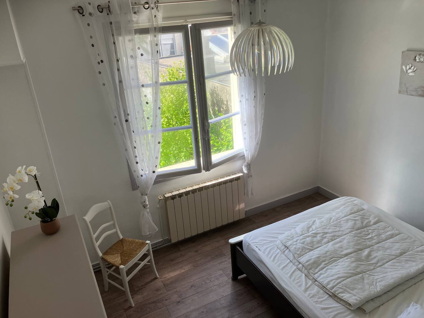 Maison de plain-pied tout confort en centre-ville, proche des commerces et du marché. Séjour avec salon, téléviseur et wifi, cuisine équipée, chambre avec lit de 160 x 200 et penderie, salle d’eau avec douche et wc, lave-linge inclus. Grand jardin clos, terrasse ensoleillée avec salon de jardin et barbecue, parking privé fermé.