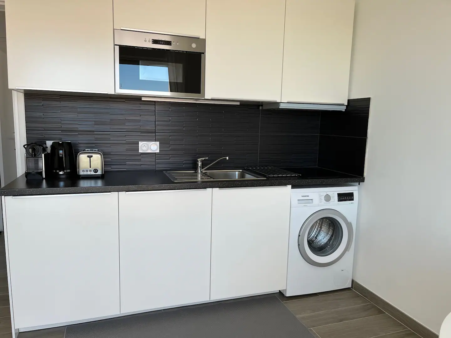 Studio neuf et tout confort au 2ème étage d’une résidence de standing avec parking privé et local à vélos. Situé aux Minimes, à 5 minutes à pied du centre-ville, près du Vieux-Port, de la Médiathèque et des plages. Pièce à vivre avec canapé convertible, TV, cuisine équipée, et salle d’eau avec douche et WC.
