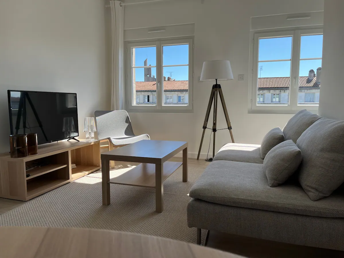 Appartement tout confort entièrement rénové, idéalement situé en centre-ville, proche des commerces, du marché central et de la plage. T3 avec séjour, smart TV, wifi, cuisine équipée, deux chambres et salle d’eau moderne avec douche et lave-linge. Emplacement exceptionnel !